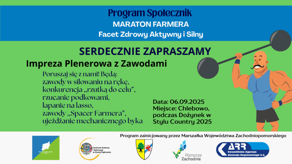Fundacja Region Powiat Gmina zaprasza do udziału w projekcie ,,Maraton Farmera – Facet Zdrowy, Aktywny i Silny”, realizowany na terenie Gminy Stara Dąbrowa